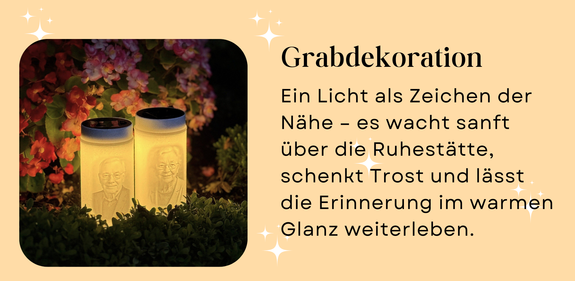 - Wenn die Dämmerung einsetzt, lässt das Solarlicht dein Motiv weich leuchten – ein liebvolles Zeichen der Erinnerung, das Trost spendet.