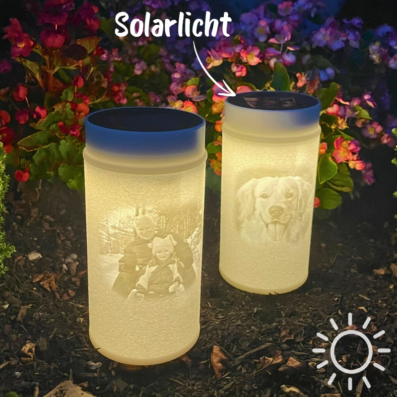 Das LED-Solarlicht entfaltet in Kombination mit dem speziellen 3D-Druckverfahren sanfte Leuchteffekte, die Erinnerungen zum Strahlen bringen.