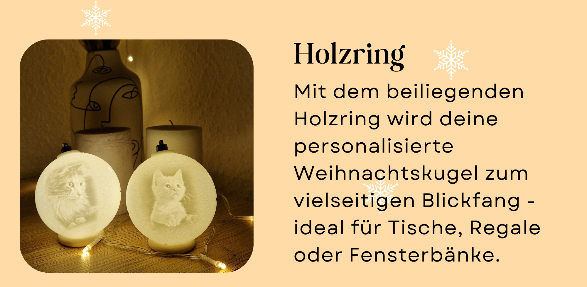 - Vielseitig einsetzbar: Ob am Weihnachtsbaum oder als stilvolle Tischdekoration – mit dem mitgelieferten Aufhängedraht und dem eleganten Holzring kannst du die Kugel flexibel einsetzen.